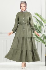 Beli Bağcıklı Sofia Elbise 024MR1077-M Haki