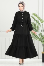 Beli Bağcıklı Sofia Elbise 024MR1077-M Siyah