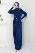 Aksesuar Düğmeli Simli Abiye 3010BSS1025-M Saks