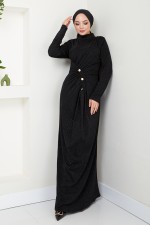 Aksesuar Düğmeli Simli Abiye 3010BSS1025-M Siyah