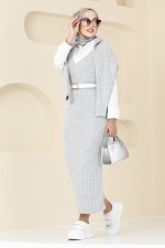 Bisiklet Yaka Triko Elbise Kombin 4045UZ1029-M Gri