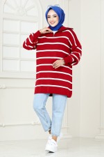 Çizgili Triko Tunik 1002KLN1035-M Kırmızı