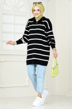 Çizgili Triko Tunik 1002KLN1035-M Siyah