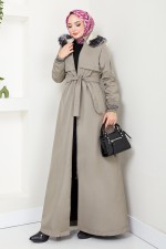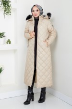 Kapşonu Kürklü Kapitone Kaban 7001ZNR1012-M Taş