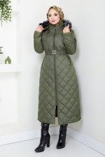 Kapşonu Kürklü Kapitone Kaban 7001ZNR1012-M Haki