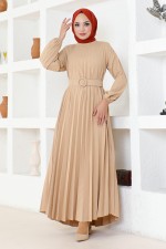 Kuşaklı Elbise HBS3025 Bej