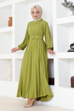 Kemerli Elbise HBS9897 Yağ Yeşili