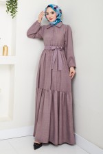 Kuşaklı Elbise HBS3025 Koyu Lila