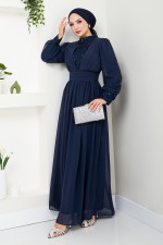 Pullu Şifon Abiye YGS4020 Lacivert