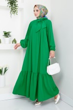 Yakası Fular Detaylı Elbise 2454HBS932-M Yağ Yeşili