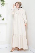 Yakası Fular Detaylı Elbise 2454HBS932-M Taş