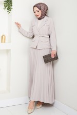 Kruvaze Yaka Kemerli Etekli Takım 16201BSK984-M Taş