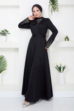 Drapeli Kemerli Abiye 267DVL897-M Siyah