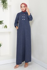 Gömlek Yakalı Bürümcük Elbise 2501HBS932-M İndigo