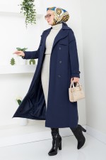Önü Düğmeli Trençkot 16126BSK984-M Lacivert