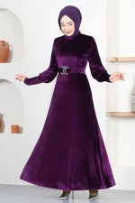 Göğsü Drapeli Tesettür Abiye 5469END900-M Bordo