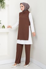 Yırtmaç Detaylı Üçlü Takım 5602ZNK903-M Kahve
