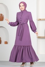 Kuşaklı Elbise ASM2665 Koyu Lila