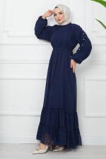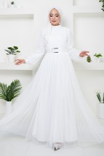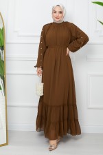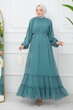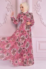 Kuşaklı Şifon Elbise Gül Kurusu NEV24725