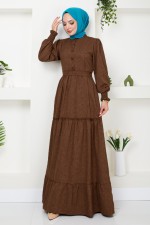 Eteği Fırfırlı Keten Elbise 4719ZNK903-M Kahve