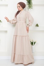 Drapeli Tesettür Abiye 12241PL940-M Latte