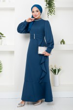 Eteği Volanlı Tesettür Elbise 1225PL940-M İndigo
