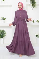 Yarım Düğmeli Elbise 2350BGS895-M Lila