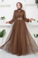 Kemeri Taş Detaylı Abiye 5616END900-M Kahve