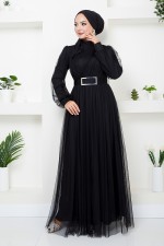 Kemeri Taş Detaylı Abiye 5616END900-M Siyah