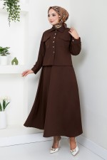 Önü Düğmeli Etekli Takım 3010ZNK903-M Kahve