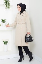 Kemer Detaylı Trençkot 16122BSK984-M Taş