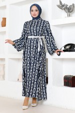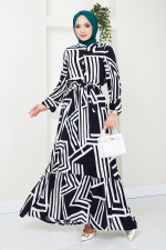 Eteği Volanlı Tesettür Elbise 1225PL940-M Siyah