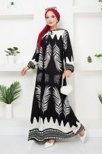 Desenli Viskon Elbise 2353BGS895-M Siyah&Ekru