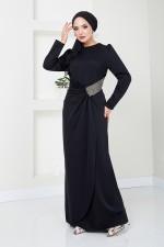 Drapeli Tesettür Elbise 5026SL890-M Siyah