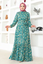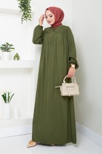 Önü Yarım Pat Düğmeli Elbise 2020BGS895 Haki