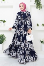 Desenli Viskon Elbise 2351BGS895-M Laci