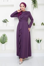 Drapeli Tesettür Abiye 12241PL940-M Koyu Lila