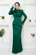 Püsküllü Saten Abiye 5618END900-M Zümrüt