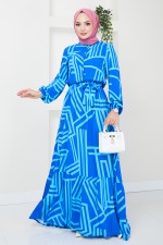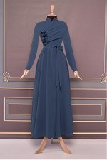 Kemeri Taşlı Tesettür Elbise 268DVL897-M İndigo