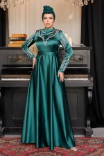 Kolları İşlemeli Abiye 6089LPN909-M Petrol