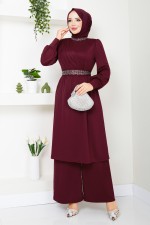 Taş Detaylı Tesettür Takım 280DVL897-M Bordo