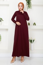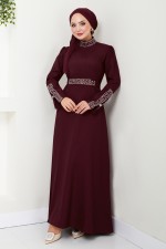 Kolları Düğme Detaylı Elbise 10006ETT902-M Bordo