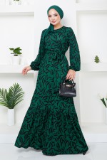 Desenli Viskon Elbise 2351BGS895-M Haki