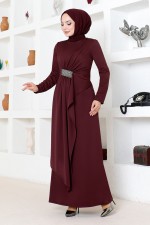 Drapeli Taş İşlemeli Abiye 5020SL890 Bordo