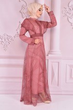 Düğmeli Elbise ZNN4086 Gül Kurusu