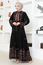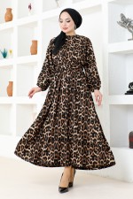 Leopar Desenli Elbise HBS9580 Kahverengi