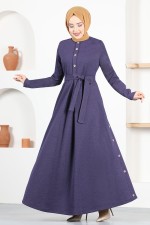 Kuşaklı Elbise MSL4322 Koyu Lila