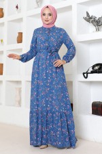 Çiçek Desenli Elbise ZNN4069 Mavi
