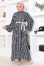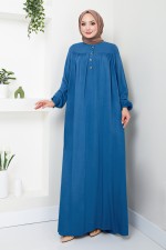 Önü Yarım Pat Düğmeli Elbise 2020BGS895 İndigo