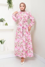 Çiçek Desenli Elbise ETT10067-M Pembe